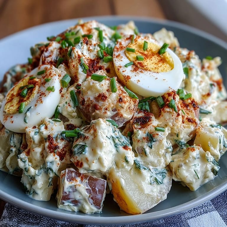 Pin Now The scent of smoky paprika drifted through my kitchen the first time I tried combining deviled eggs with potato salad, and I remember pausing mid-chop to savor that anticipation. I wasn’t trying to impress anyone—just playing with flavors for a casual weekend lunch, curious to see if that creamy tang would liven up simple potatoes. Sometimes joy sneaks in quietly when you least expect it, curled up in a mixing bowl. It’s easier than I imagined, and every time I make it, my counters look delightfully messy from all the dicing and whisking. With spring air breezing through the window, this dish feels perfect for both picnics and kitchen tables alike.