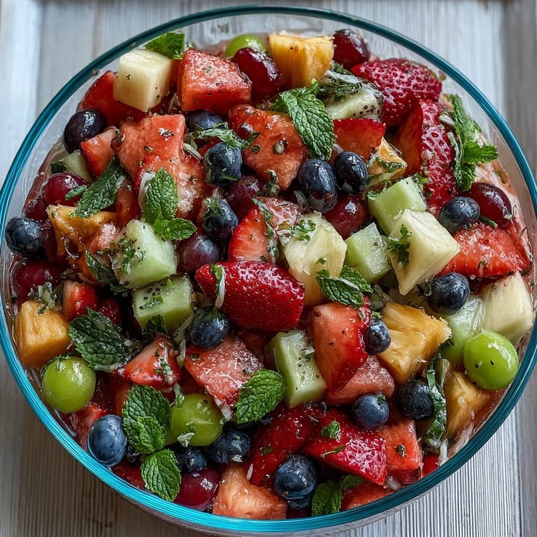 Prepare all the fruit fresh and chilled to maximize the refreshing taste. Use ripe strawberries and sweet watermelon for the best natural flavors. Whisk the dressing thoroughly so the honey blends completely, ensuring every bite is coated with zesty sweetness.
